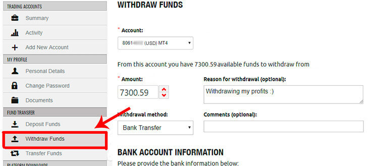 下のスクリーンショットからわかるように、アカウントから73万円を引き出すため、出金機能を使用することにしました。